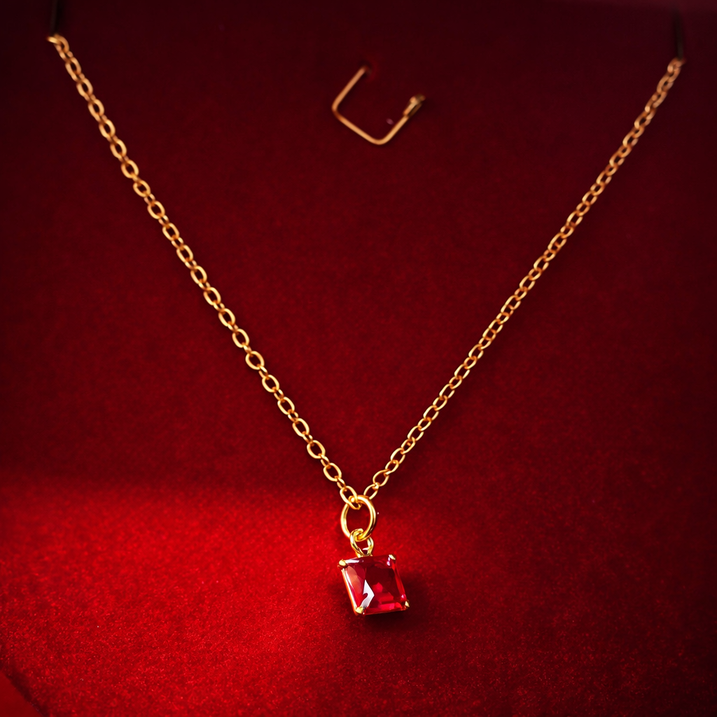 A corrente fina e resistente proporciona um caimento leve e confortável, tornando o colar ideal tanto para o uso diário quanto para ocasiões especiais. A pedra vermelha traz destaque ao visual, simbolizando feminilidade, intensidade e bom gosto.